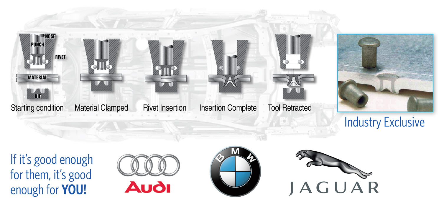 Utilizing the same technology as high-end automobile manufacturers, such as Jaguar, BMW, and Audi, Only Alpha Pool Products uses a rivet to join all flanges and radii on our panels. If “SPERT” technology is advanced enough to hold the body of a car together, it can certainly hold swimming pool walls together!